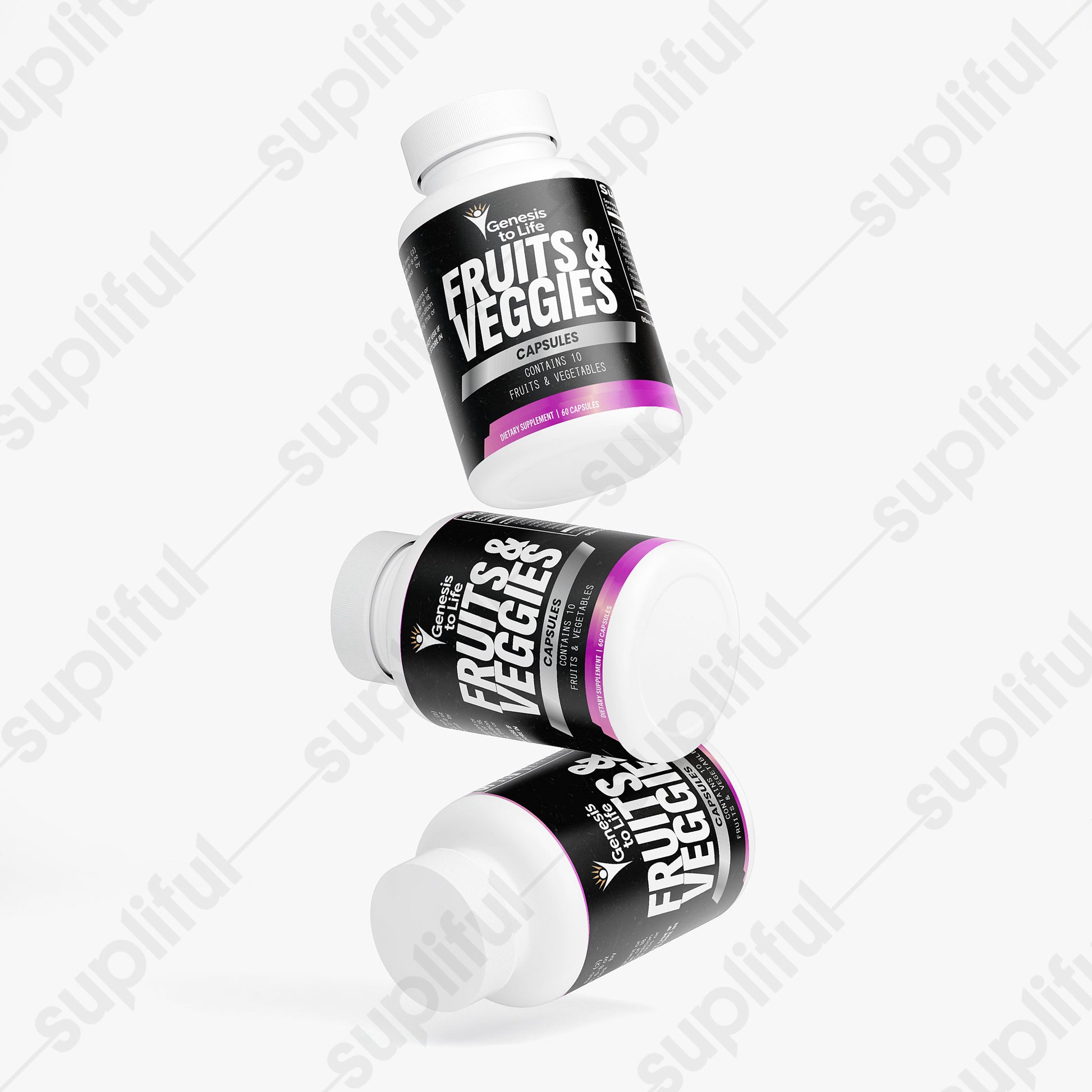 Ingredients: Apple Fiber Powder (Malus pumila) (fruit), Carrot Powder (whole carrot), Beet Root Powder (Beta vulgaris) (root), Blueberry Powder (fruit), Garlic Powder (bulb), Ginger Powder (root), Raspberry Powder (fruit), Red Bell Pepper Powder (fruit), Strawberry Juice Powder (fruit), Tomato Extract (Lycopersicon esculentum) (fruit), Gelatin (capsule), Brown Rice Flour.