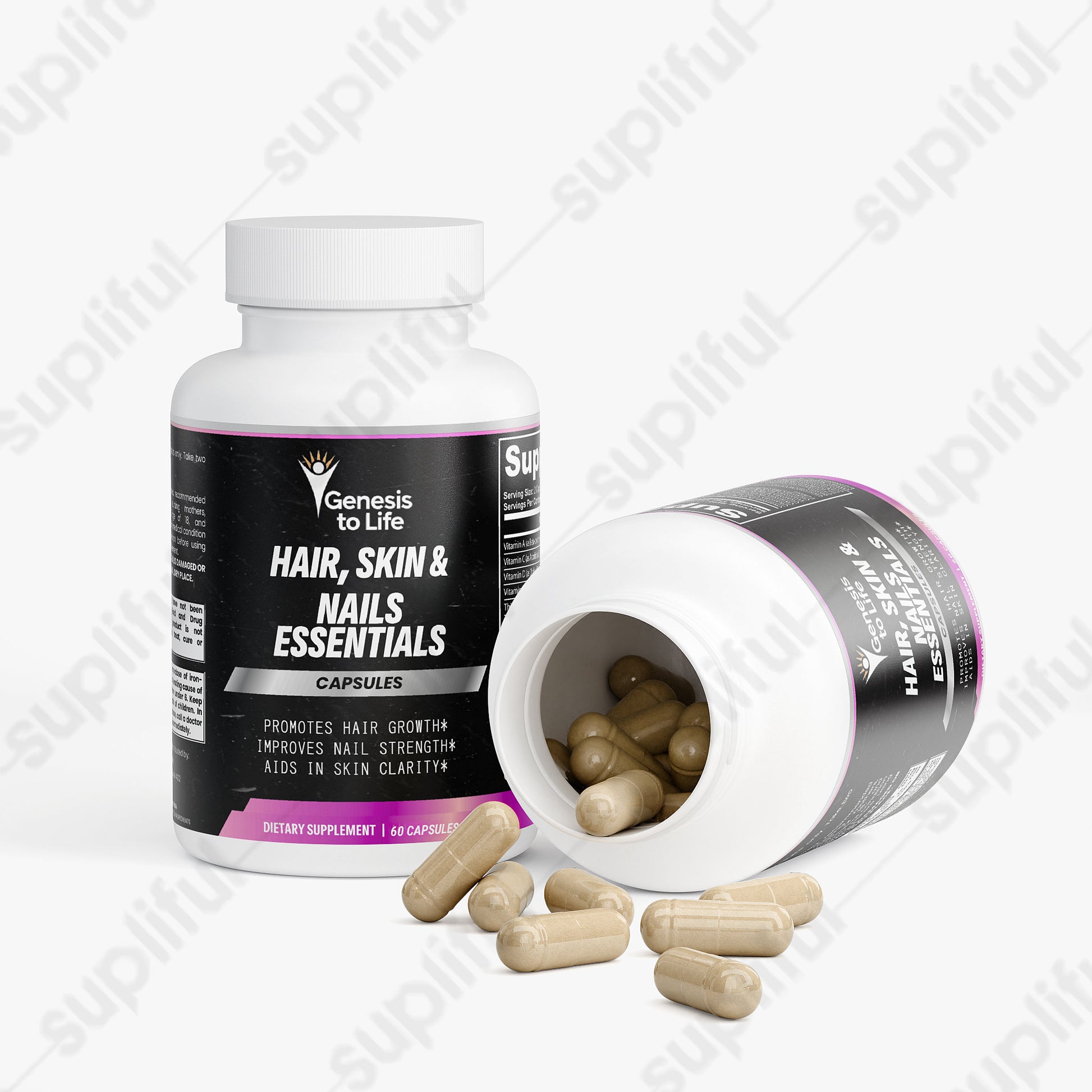Our Hair, Skin, and Nails Essentials supplement is made to give you that natural glow. In combination, Vitamin B6, Folate, and Biotin work together to maintain elastin in the hair, skin, and nails. Elastin is a major component of body tissues, helping them function correctly.*